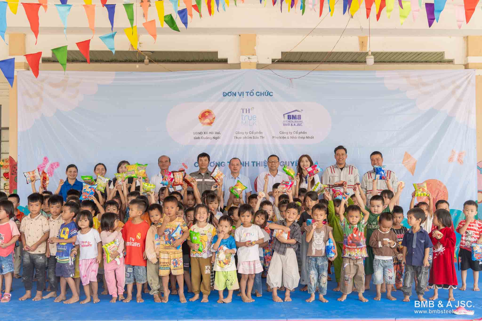 On March 26, 2026, BMB STEEL, in collaboration with TH True Milk and the People's Committee of Mo Rai Commune, embarked on a very special journey to Mo Rai Kindergarten in Kenh Village, Quang Ngai Province.